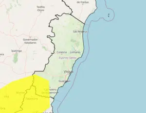 O Instituto Nacional de Meteorologia (Inmet) emitiu um alerta de atenção para chuvas intensas em cidades da região Sul do Espírito Santo. O aviso, classificado como ‘perigo potencial’ na escala do órgão, é válido até a manhã desta terça-feira (10).