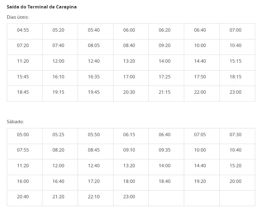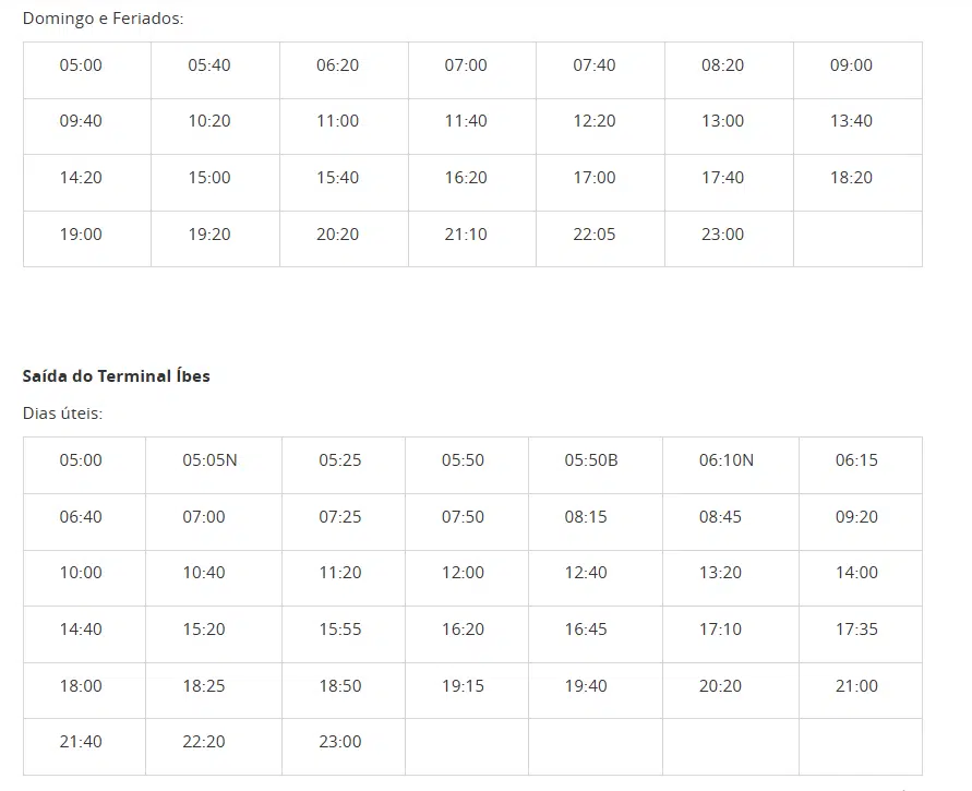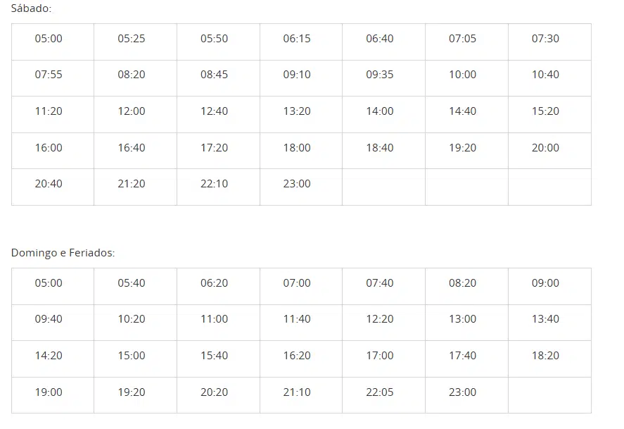Confira abaixo os horários da linha: