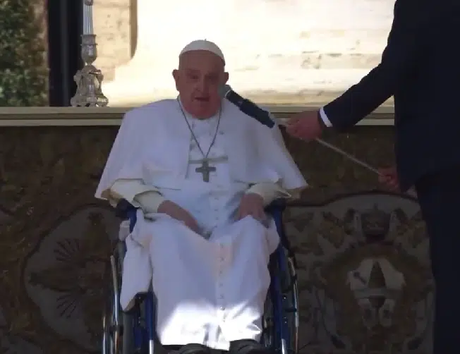 Ao fim da celebração dominical, o pontífice fez uma aparição surpresa. De cadeira de rodas e usando uma cânula debaixo do nariz, ele acenou brevemente para os fieis. Segundo o Vaticano, havia 20 mil peregrinos reunidos na Praça São Pedro.