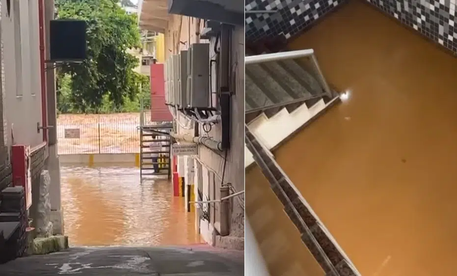 Em Cachoeiro, no início da tarde desta quinta-feira (09), garagens de prédios do Centro da cidade ficaram alagados por conta da elevação do Rio Itapemirim. No Shopping Cachoeiro, a água chegou nas escadarias do centro comercial.