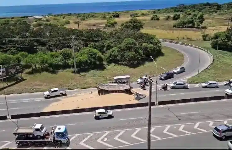 De acordo com as informações divulgadas, o caminhão tombou após quebrar o eixo. A carroceria do veículo ficou atravessada entre as duas pistas do sentido Itaparica. Apesar do susto, ninguém se feriu.