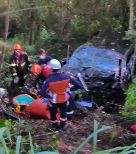Van com paraguaios cai em ribanceira na BR-262 no ES