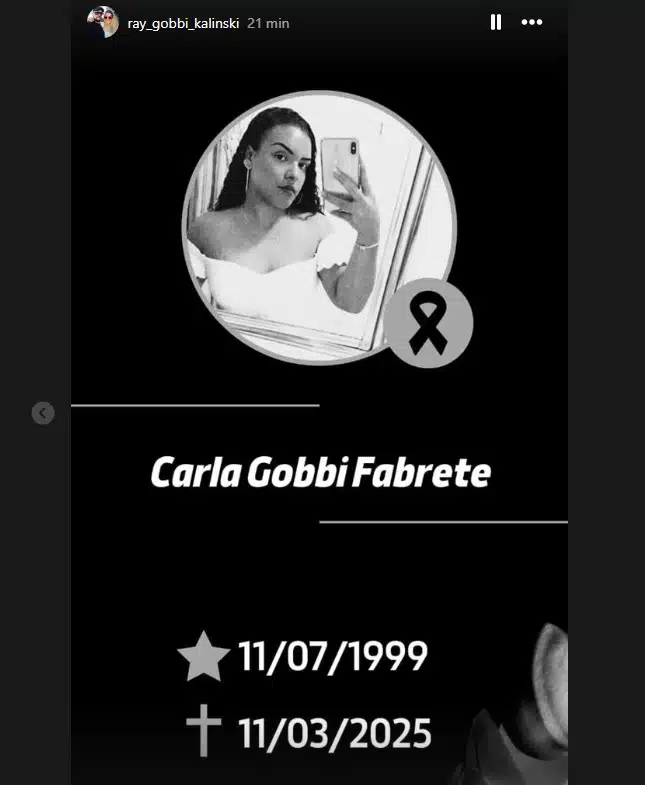 O corpo de Carla Gobbi Fabrete, 25 anos, será velado na noite desta terça-feira (11) na Igreja Assembleia de Deus, em São Gabriel da Palha, no Noroeste do Espírito Santo.
