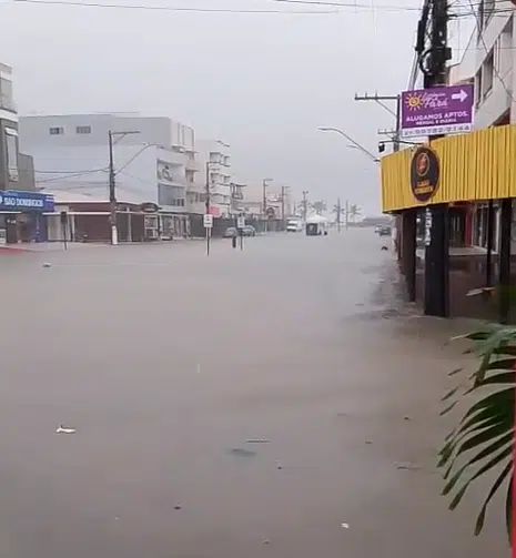 Ruas de vários bairros do balneário de Guriri, em São Mateus, no Norte do Espírito Santo, ficaram alagadas nesta segunda-feira (12), após um temporal que atingiu o município no final da noite deste domingo (11) e durou ao longo da madrugada. Vídeos compartilhados nas redes sociais mostram os transtornos causados pelos alagamentos. Veja abaixo.