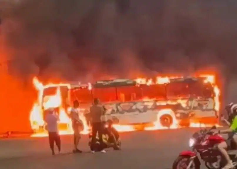 Imagens divulgadas nas redes sociais mostram o coletivo sendo consumido pelas chamas.