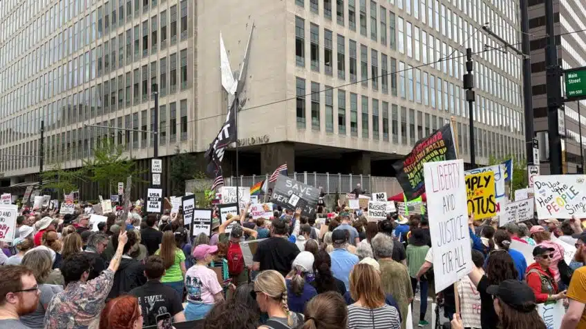 Em Washington, manifestantes citavam preocupações com as ameaças aos direitos ao devido processo legal, protegidos pela Constituição, à Previdência Social e a outros programas federais de segurança. Em Columbia, Carolina do Sul, centenas de pessoas protestaram na sede do governo estadual segurando cartazes com slogans como “Lute Ferozmente, Harvard, Lute”.E em Manhattan, manifestantes se reuniram contra as contínuas deportações de imigrantes enquanto marchavam da Biblioteca Pública de Nova York em direção ao Central Park e passavam pela Trump Tower. Fonte: Associated Press