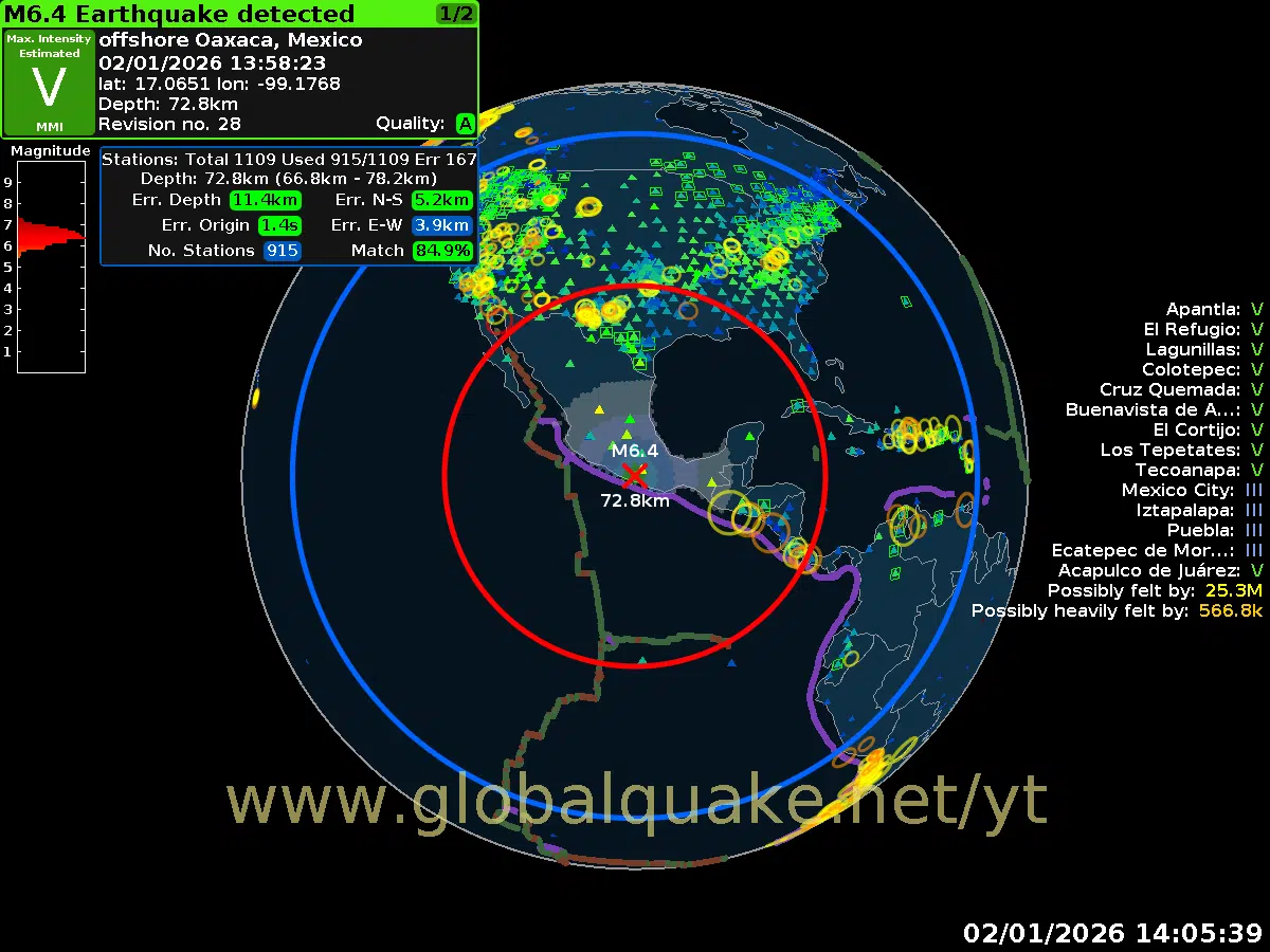 O terremoto teve uma magnitude preliminar de 6,5 e seu epicentro foi localizado próximo à cidade de San Marcos, no estado de Guerrero, no sul do México, perto do balneário de Acapulco, na costa do Pacífico, de acordo com a agência sismológica nacional do México.