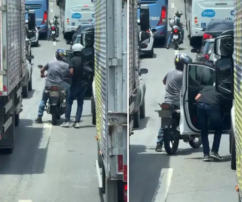 Uma motorista foi assaltada no meio do trânsito por dois homens em uma moto na Avenida Mário Gurgel, em Cariacica, na tarde desta segunda-feira (10). Os homens, que estavam armados, abordaram a vítima durante um engarrafamento e levaram a bolsa da mulher e a chave do veículo.