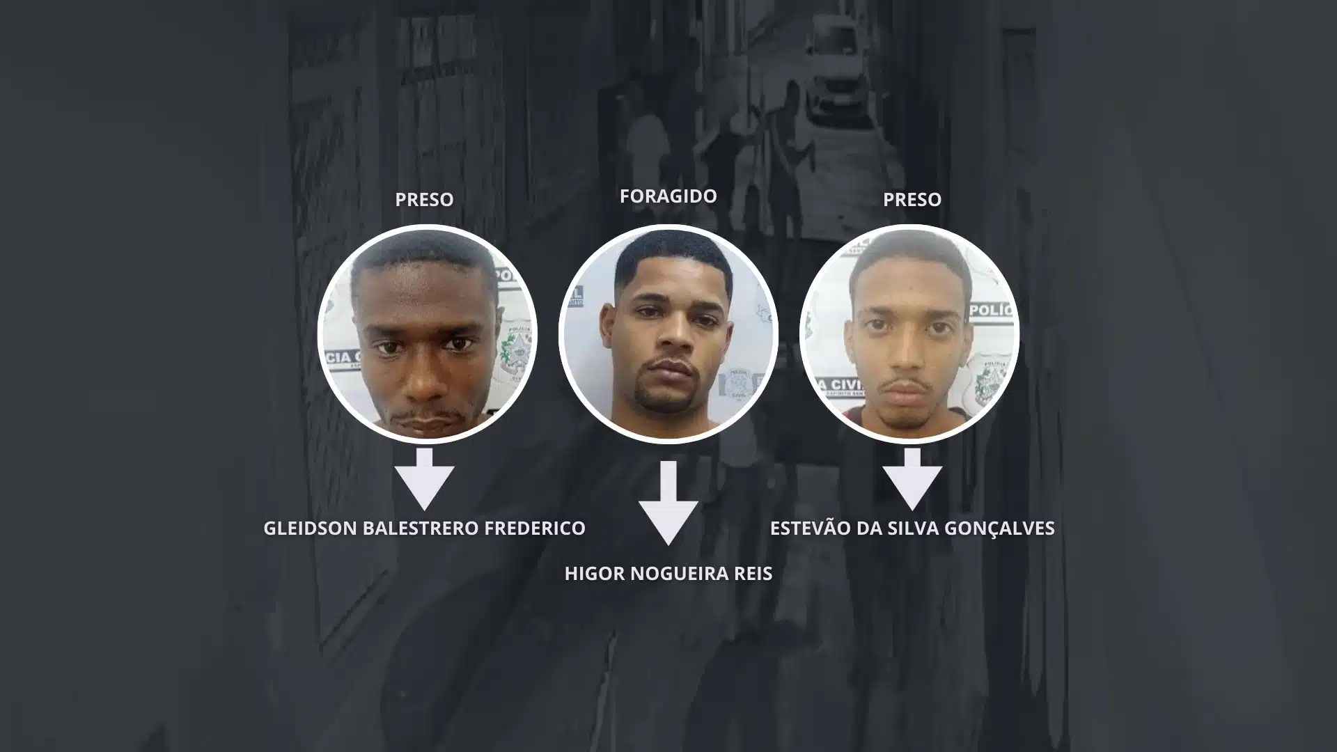 Gleidson e Estevão foram presos no dia 17 de outubro, no Morro da Piedade, em Vitória. Já Higor continua foragido da justiça e o outro suspeito que estava no local ainda não foi identificado pelos policiais.