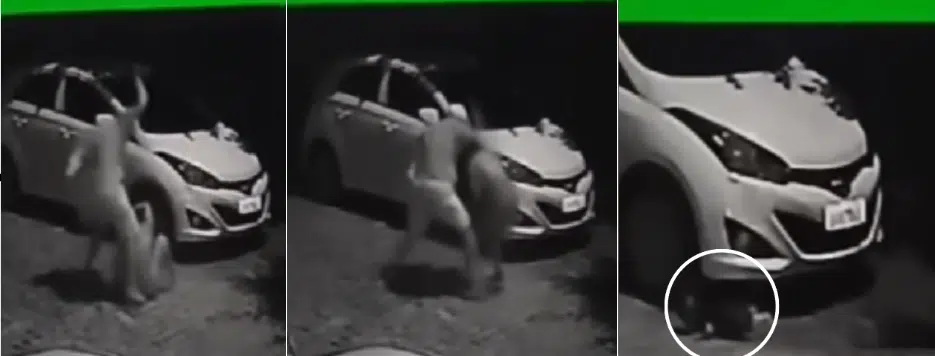 Nas imagens, é possível ver que o homem agride a mulher com socos, chutes e empurrões no meio da rua. A mulher que segurava o bebê no colo deixa a criança no chão, próxima a roda de um veículo estacionado. Em seguida, uma testemunha pega o bebê e aciona a polícia.