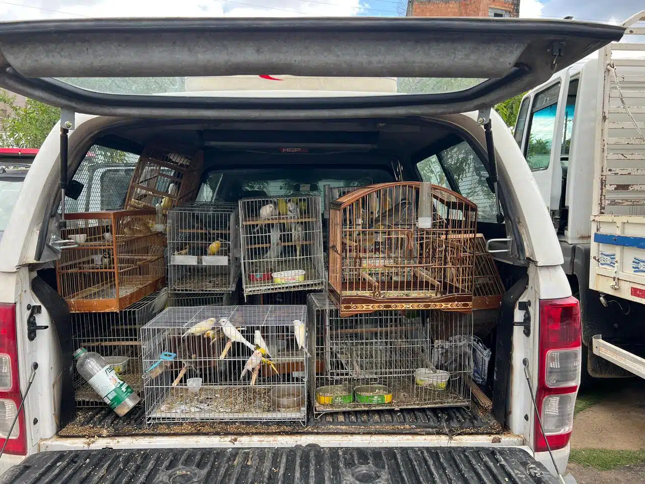 O Instituto de Meio Ambiente e Recursos Hídricos (Iema) apreendeu 69 pássaros de diferentes espécies, além de 21 gaiolas. A Polícia Civil também encontrou 178 gaiolas adicionais, tanto de madeira quanto de ferro, e dois viveiros de grandes dimensões.