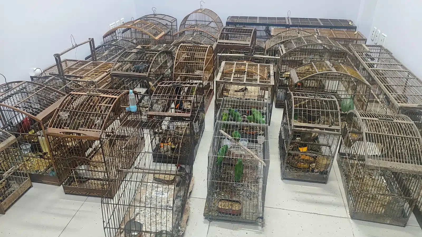 Além dos pássaros, cerca de 100 gaiolas foram apreendidas