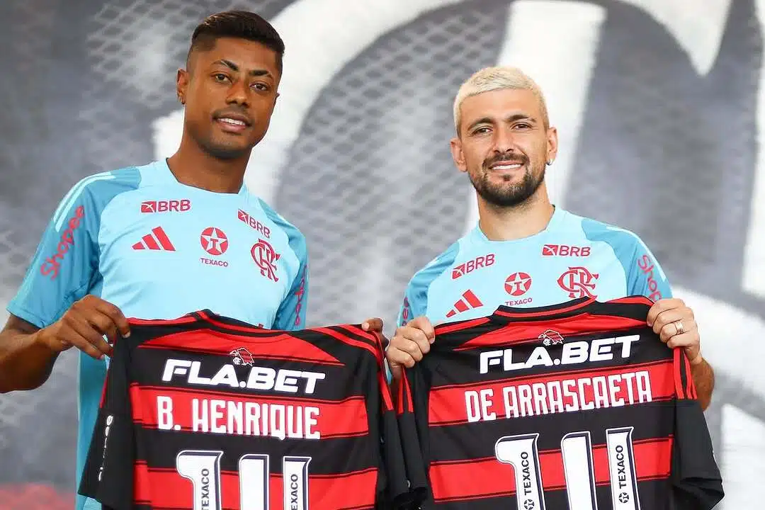 Nesta terça-feira, após a finalização do treinamento no CT Ninho do Urubu, o meia Arrascaeta e o atacante Bruno Henrique foram premiados com uma camisa de homenagem por se tornarem os maiores campeões da história do Flamengo. No último domingo, com a conquista da Supercopa Rei, sobre o Botafogo, eles chegaram a 14 títulos e superaram Zico, Júnior e Gabigol.