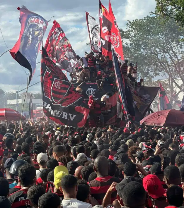 No caminho para os festejos, jogadores do Flamengo já interagiram com torcedores da equipe. Alguns atletas, inclusive, chegaram a aparecer no teto do ônibus, do lado de fora do veículo.