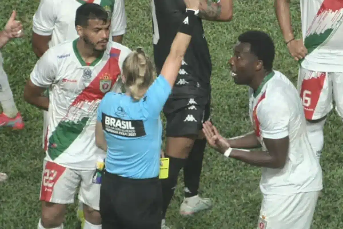 Pouco depois, aos 19 minutos, o volante Fernando, do Real Noroeste Capixaba Futebol Clube, foi expulso após cometer falta, deixando a equipe capixaba com um jogador a menos ainda na etapa inicial.