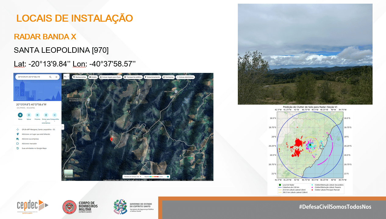 Santa Leopoldina: radar de banda X, com alcance de 60 a 80 km, focado na Grande Vitória e região serrana.