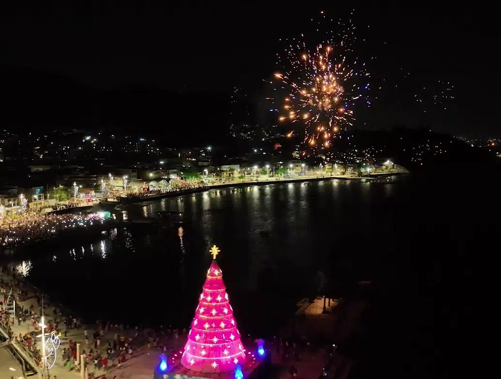 A orla de São Pedro, na Ilha das Caieiras, foi tomada por luzes, música e muita festa nesta terça-feira (18), noite em que Vitória inaugurou sua primeira Vila Natalina do ano.