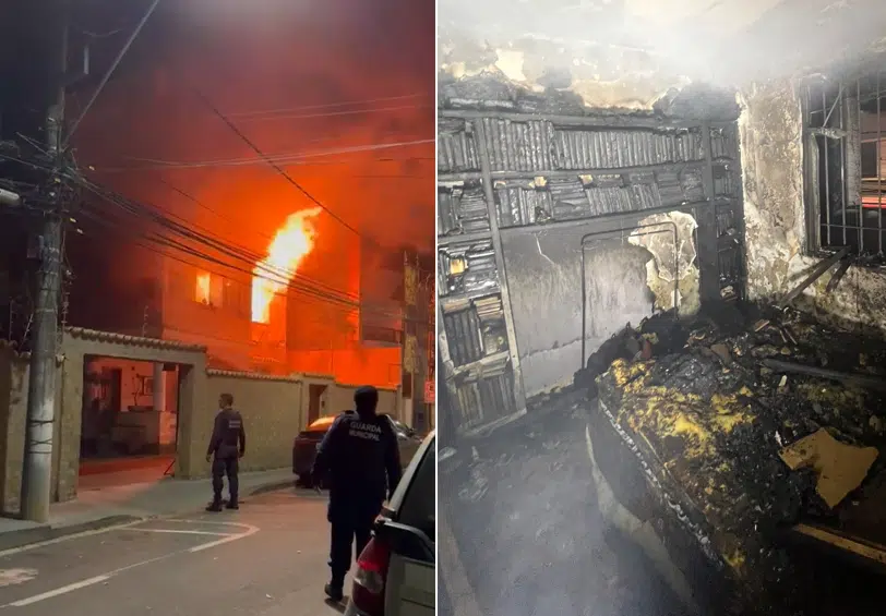 Vídeos registrados por moradores mostram labaredas intensas e uma grande quantidade de fumaça consumindo a casa.