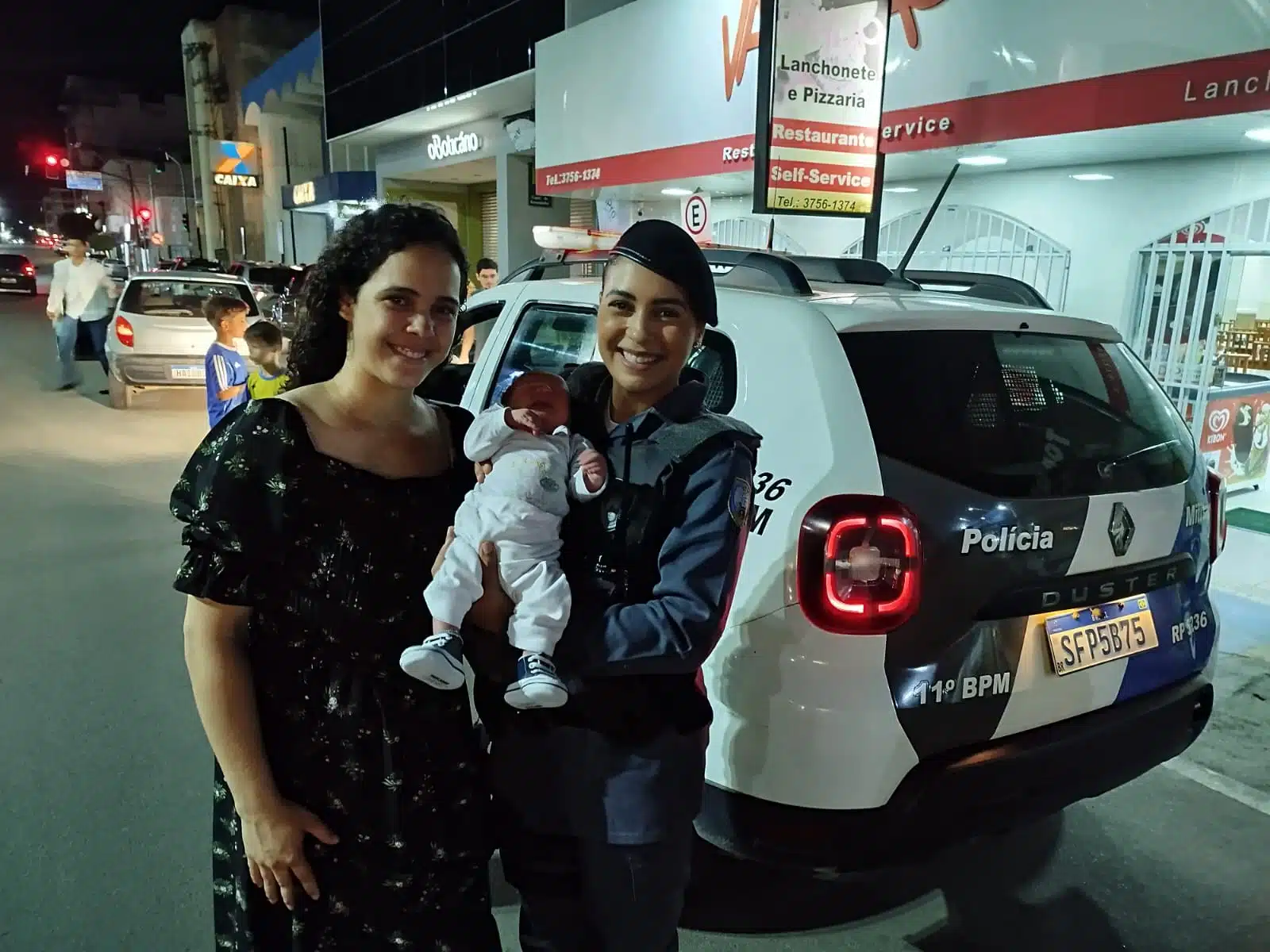 A mãe do recém-nascido, Ana Carolina, se assustou ao ver que o filho havia se engasgado e que não conseguia respirar após a amamentação. Neste momento, o pai da criança levou o filho até uma equipe da PM, que fazia patrulhamento no local.
