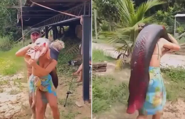 Em um dos vídeos compartilhados, Marcella aparece carregando o peixe, mostrando o porte do animal e a dificuldade para transportá-lo. Após a captura, a família consumiu o peixe.