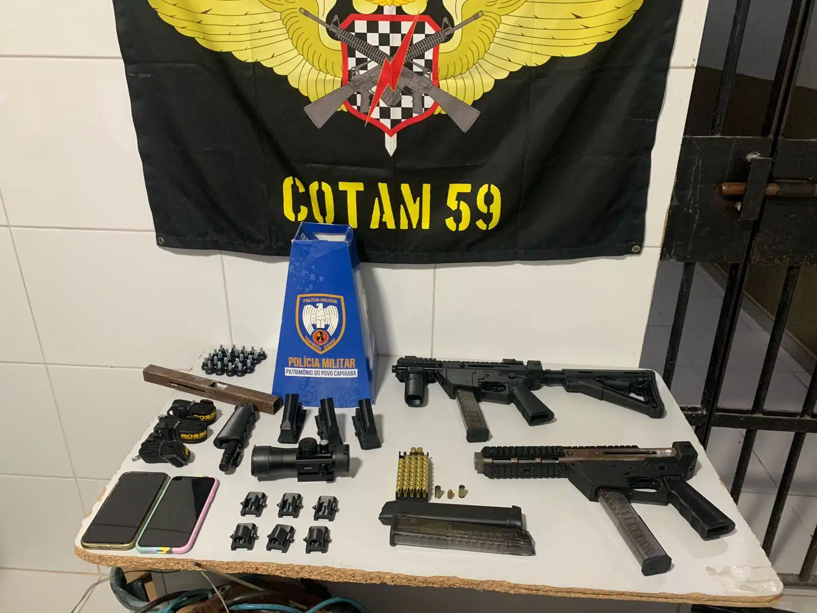 A investigação começou após denúncias anônimas informarem que um homem identificado como Nathan estaria produzindo submetralhadoras de forma artesanal na Rua Antônio Lopes Merçon, em associação com uma organização criminosa da região.