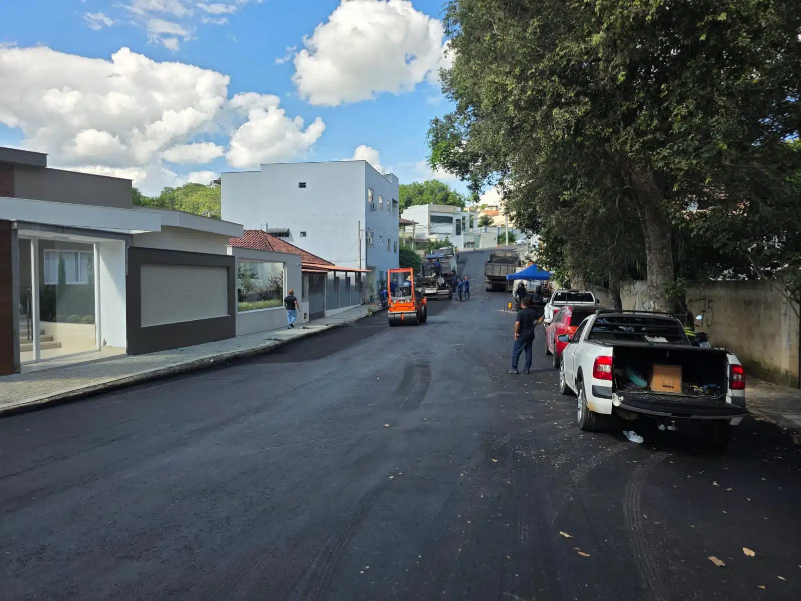 Para garantir a segurança dos trabalhadores e a agilidade na execução dos serviços, as ruas que recebem a pavimentação precisam ser interditadas temporariamente.