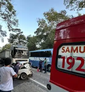 O acidente aconteceu na altura do km 89 da da BR-262 em Pedra Azul, causando paralisação temporária no tráfego.