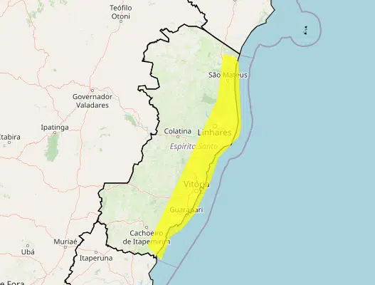 O Instituto Nacional de Meteorologia (Inmet) emitiu um alerta de acumulado de chuva para o Espírito Santo, válido a partir das 18h desta quarta-feira (02) até as 23h59 de quinta-feira (03). O aviso é classificado com grau de severidade perigo potencial e atinge ao menos 27 municípios capixabas.