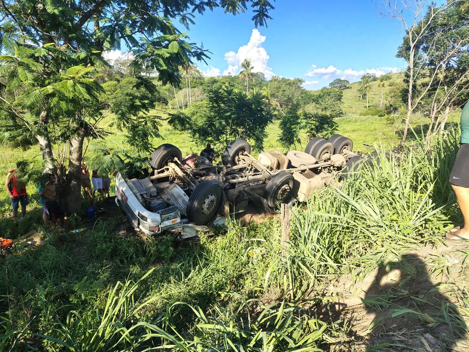 Na tarde de quinta-feira (25), o Corpo de Bombeiros foi acionado para atender a uma ocorrência de tombamento de caminhão carregado de abacaxis na Rodovia ES 482, em Cachoeiro de Itapemirim. Ao chegar ao local, a equipe constatou que o veículo havia capotado, e duas pessoas, o motorista e o carona, estavam presas às ferragens.