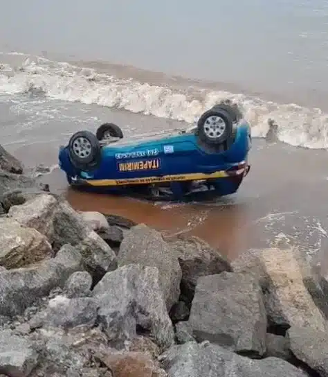 Vídeos gravados por pessoas que passavam pela região mostram o veículo com as rodas para cima. Assista: