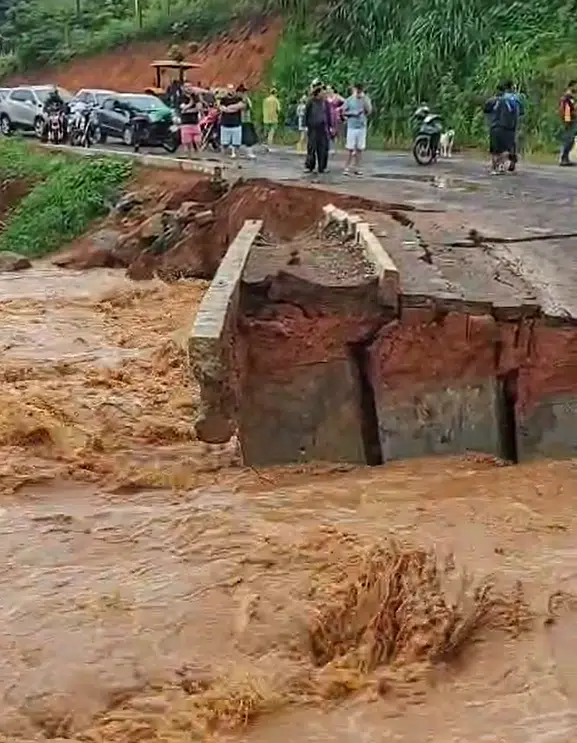 Cidade registrou quedas de barreiras e alagamentos; vídeos mostram parte de uma estrada cedendo após a chuva forte
