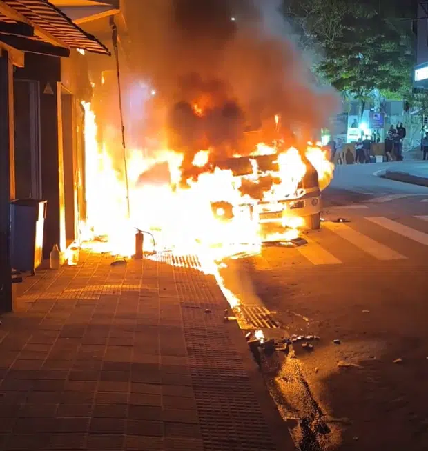 Um incêndio destruiu dois veículos na noite dessa quinta-feira (13) no Centro de Vargem Alta, no sul do Estado. O fogo começou em uma caminhonete estacionada em frente a uma farmácia, e alastrou-se rapidamente, queimando o carro que estava guinchado e sendo levado na carroceria. Lojas que estavam próximas também foram atingidas.