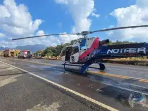 A cena incomum chamou a atenção de quem passava pela rodovia. O helicóptero Harpia 09, do Núcleo de Operações e Transporte Aéreo (Notaer), pousou diretamente na BR-262 para garantir o resgate ágil e seguro. A manobra foi realizada com apoio do Corpo de Bombeiros e do Samu 192, que já estavam no local.