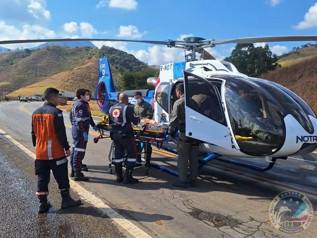 A cena incomum chamou a atenção de quem passava pela rodovia. O helicóptero Harpia 09, do Núcleo de Operações e Transporte Aéreo (Notaer), pousou diretamente na BR-262 para garantir o resgate ágil e seguro. A manobra foi realizada com apoio do Corpo de Bombeiros e do Samu 192, que já estavam no local.