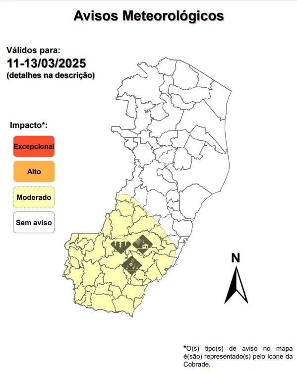 Confira o mapa do alerta: