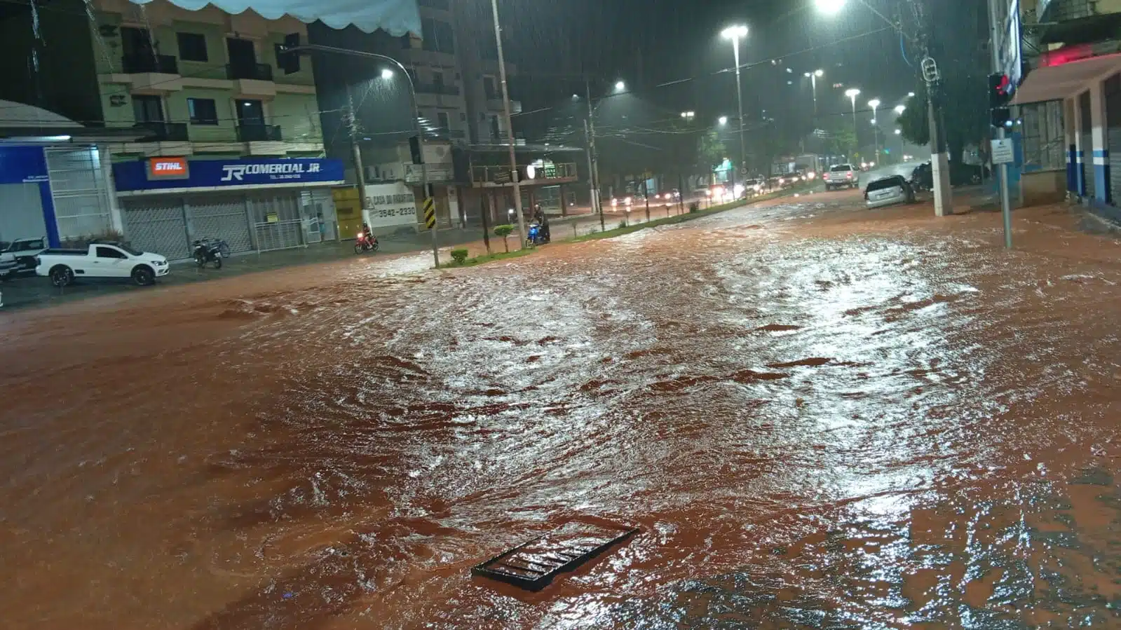 Moradores relataram que a água avançou rapidamente. Em alguns pontos, o acúmulo invadiu calçadas e chegou a atingir residências e estabelecimentos comerciais. Imagens e vídeos divulgados nas redes sociais mostram vias completamente tomadas pela água. Veja: