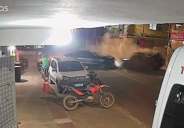 O acidente foi gravado por câmeras de segurança de um estabelecimento da região. Nas imagens é possível ver que o carro preto é violentamente atingido por outro veículo, que seguia em alta velocidade. Assista: