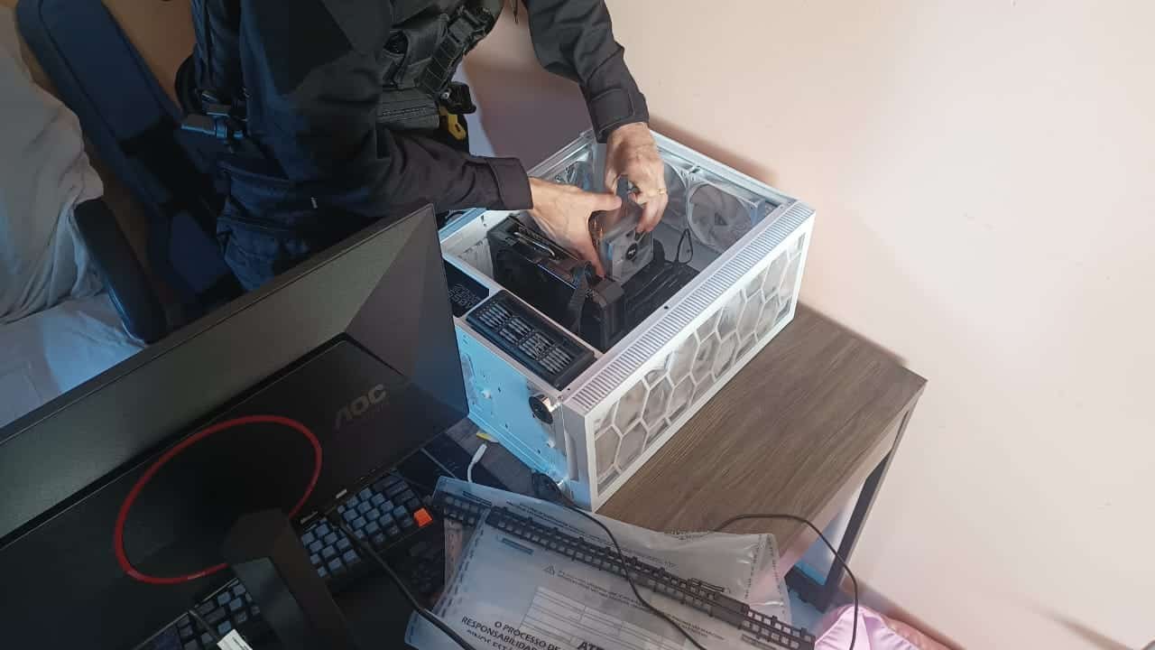 Durante a ação, foi cumprido um mandado de busca e apreensão na casa de um suspeito de vender, compartilhar e armazenar conteúdos de violência sexual envolvendo crianças e adolescentes.