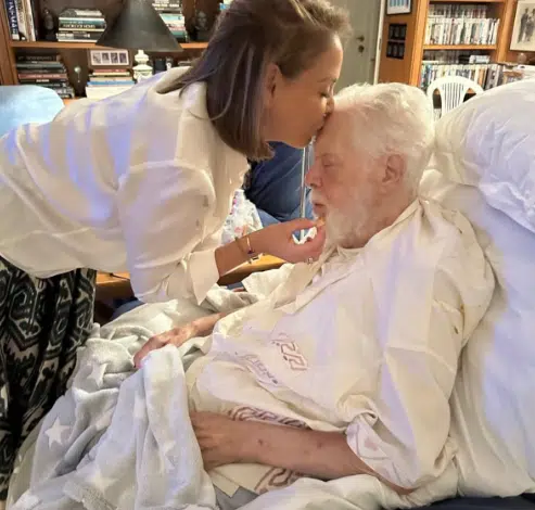 A produtora e atriz Júlia Almeida, filha de Manoel Carlos, usou as redes sociais para homenagear o pai, que morreu no último sábado, 10, aos 92 anos. A publicação, feita nesta segunda-feira, 12, no perfil oficial da produtora Boa Palavra, mostra Júlia beijando a testa do autor.