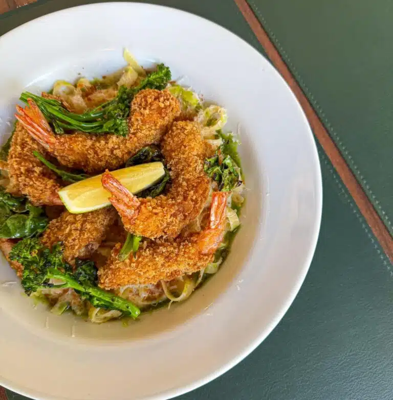 Almoço: Salada de salmão (entrada) ou Kafta (entrada); Camarões com linguini ao Bechamel e ervas (principal) ou Fraldinha Red com risoto de gorgonzola (principal); Creme Prestígio (sobremesa) ou Mousse de maracujá com chocolate (sobremesa).