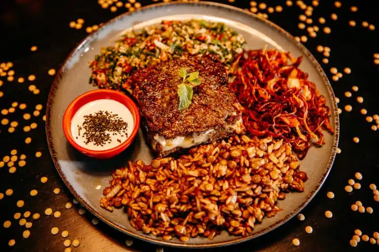 Jantar: Mahamara – Deliciosa pasta de pimentão vermelho, nozes e especiarias, tradicional da culinária do Oriente Médio que vai fazer você se apaixonar. Para acompanhar nossas famosas torradas de pão árabe assadas com zattar e gergelim (entrada) ou Bolinhos de mini falafel com molho Tarator (tahine) – Bolinhos crocantes à base de grão de bico e fava com famoso molho tarator (tahine). Não dá para comer um só! (entrada); Quizi de Cordeiro – Nosso delicioso arroz elaborado com lascas de cordeiro, amêndoas, especiarias e aquele segredinho do chef (principal) ou Camarão Mediterrâneo – Camarões VM selados no azeite com lâminas de alho e aspargos acompanhado de uma nova versão de nosso cuscuz, elaborado com tomate-cereja, pimentões amarelos e vermelhos e um toque final de frescor da romã e da hortelã, trazendo aquela harmonização perfeita (principal); Mini Bolo da Teta com sorvete de pistache – Um dos queridinhos da casa na versão mini. Bolo de chocolate 70% amêndoas e ganache de chocolate. Acompanha sorvete de pistache (sobremesa) ou Mini doce árabe com Sorvete de Nata regado com calda de flor de laranjeira – Nossos deliciosos mini doces árabes acompanhados de nosso gelato de nata regado com calda de flor de laranjeira (sobremesa).