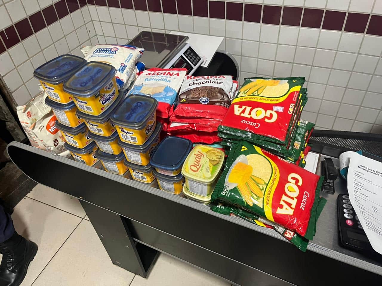 Durante a vistoria, a equipe da Vigilância Sanitária identificou alimentos impróprios para o consumo, como margarina, cereais infantis, massas para bolo, cuscuz e farinha de trigo.