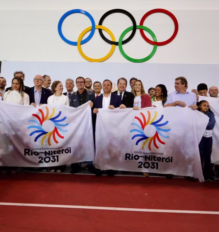 As cidades do Rio de Janeiro e Niterói, candidatas conjuntas a sediar os Jogos Pan-Americanos e Parapan-Americanos de 2031, apresentaram a logomarca oficial da campanha, nesta sexta-feira, no Parque Olímpico, na Barra da Tijuca.