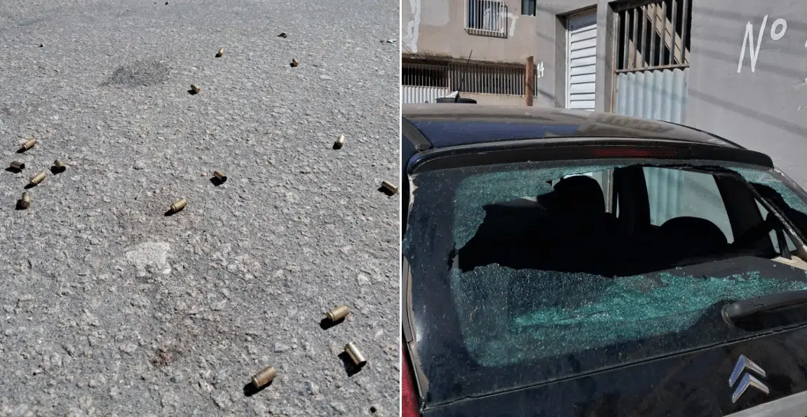 Após o tiroteio, diversas cápsulas ficaram espalhadas pelo chão. Um carro que estava estacionado na região foi atingido e teve o vidro destruído.