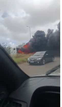 A segunda ocorrência de incêndio a ônibus, de acordo com o Centro de Controle Operacional da Ecovias Capixaba, foi registrada às 12:01, no quilômetro 260 da BR-101, na Serra. Para atendimento, foram acionados o veículo de inspeção da concessionária, a PRF e o Corpo de Bombeiros. Não houve vítimas. A pista no sentido Sul flui pela marginal.