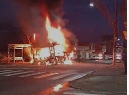 Após confronto com PM, criminosos queimam 2 ônibus na Serra