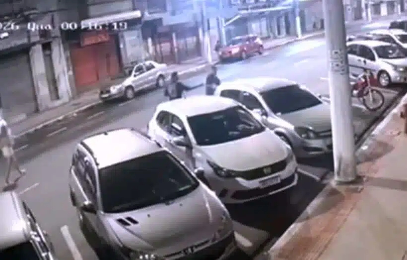 Câmeras de segurança registraram um homem quebrando vários carros que estavam estacionados na Avenida República, no Centro de Vitória, na madrugada da última quarta-feira (18).