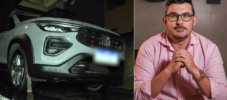Carro usado por criminosos e a vítima do crime, o empresário Wallace Lovato | Foto: Reprodução TV SIM / SBT