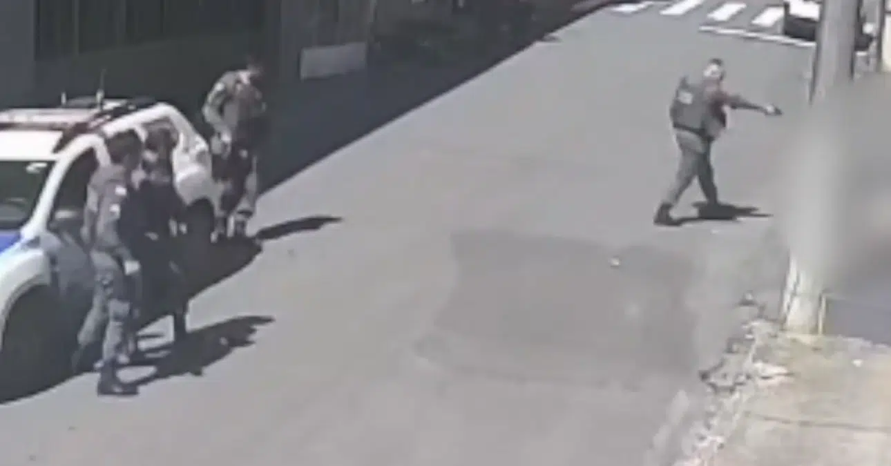 Ainda conforme o relato, os disparos teriam ocorrido quando uma das vítimas avançou em direção ao policial. No entanto, as imagens de videomonitoramento não confirmam essa versão.