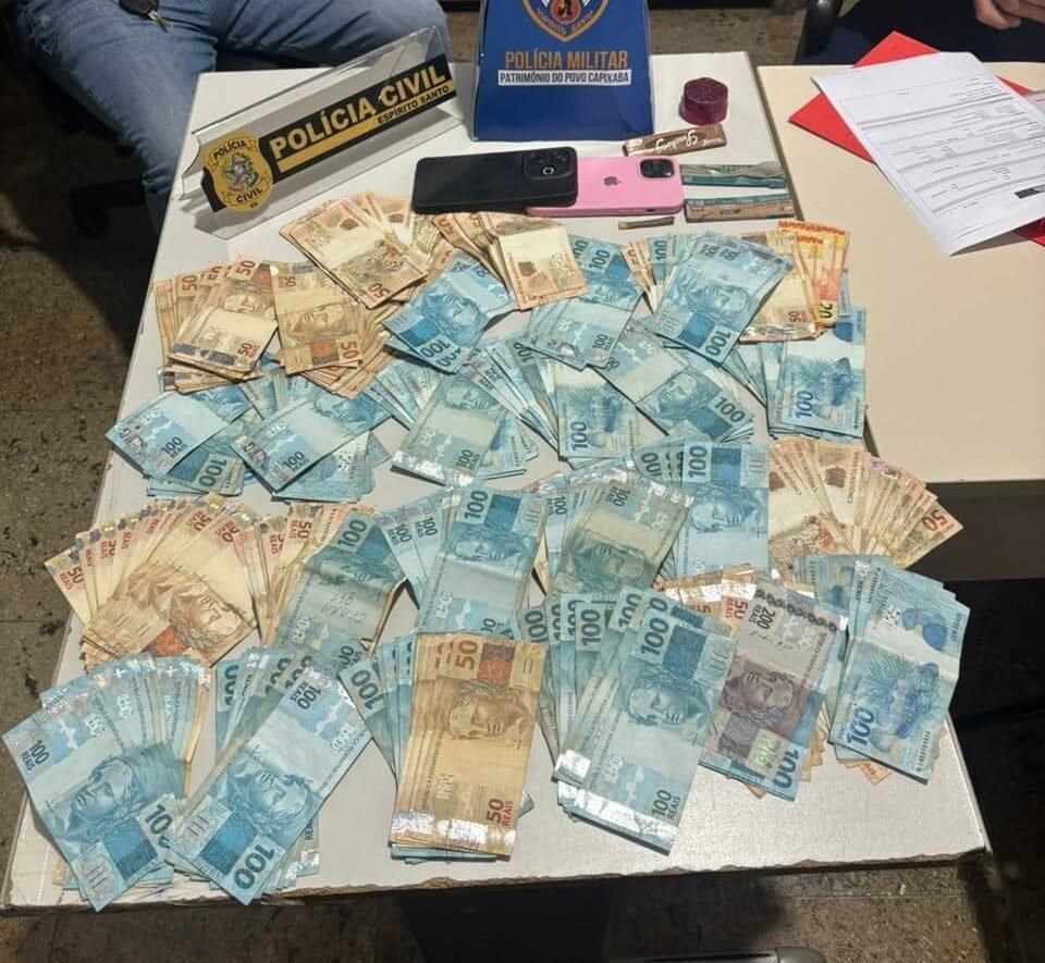 A prisão foi realizada pela Polícia Militar, que localizou o suspeito em um Gol branco no bairro São Vicente, no limite dos municípios de Vila Valério e São Gabriel da Palha. Segundo a PM, com o homem foram apreendidos R$ 20,7 mil em espécie e uma porção de maconha.